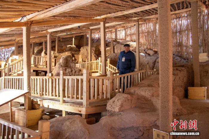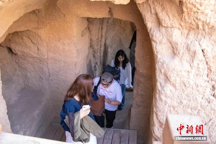 新疆吐峪沟石窟引游客参观